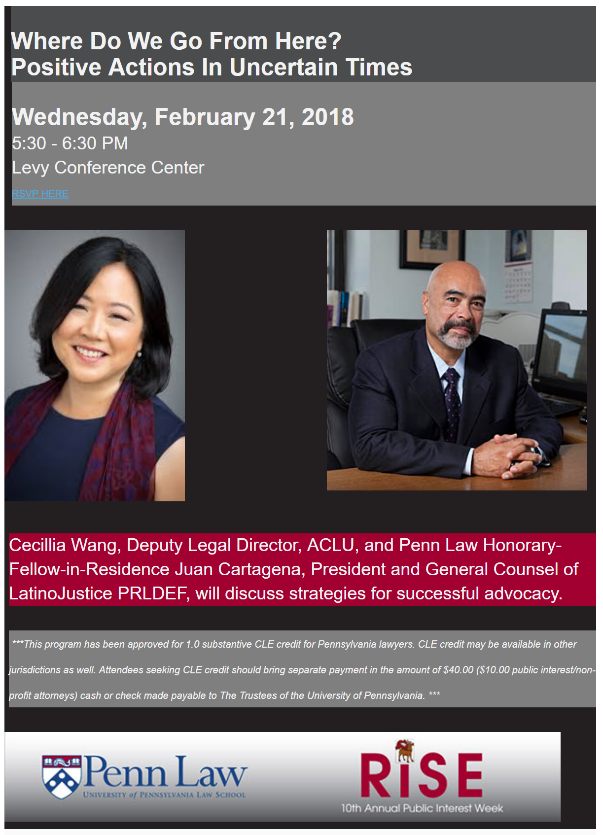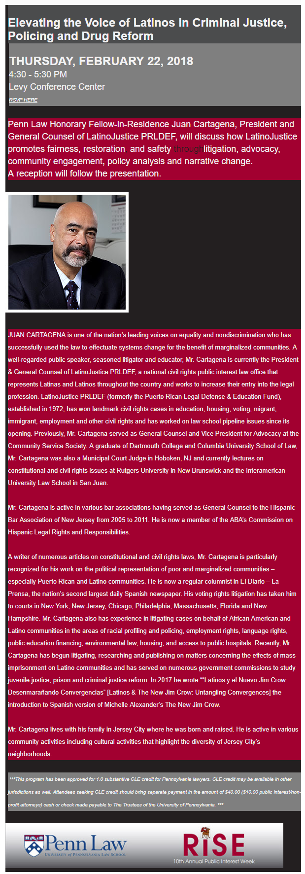Join us to Meet the President of LatinoJustice @ Penn Law Hispanic Bar Association PennsylvaniaFebruary 21, 2018 Facebook0 Twitter LinkedIn0 Tumblr 0 Likes